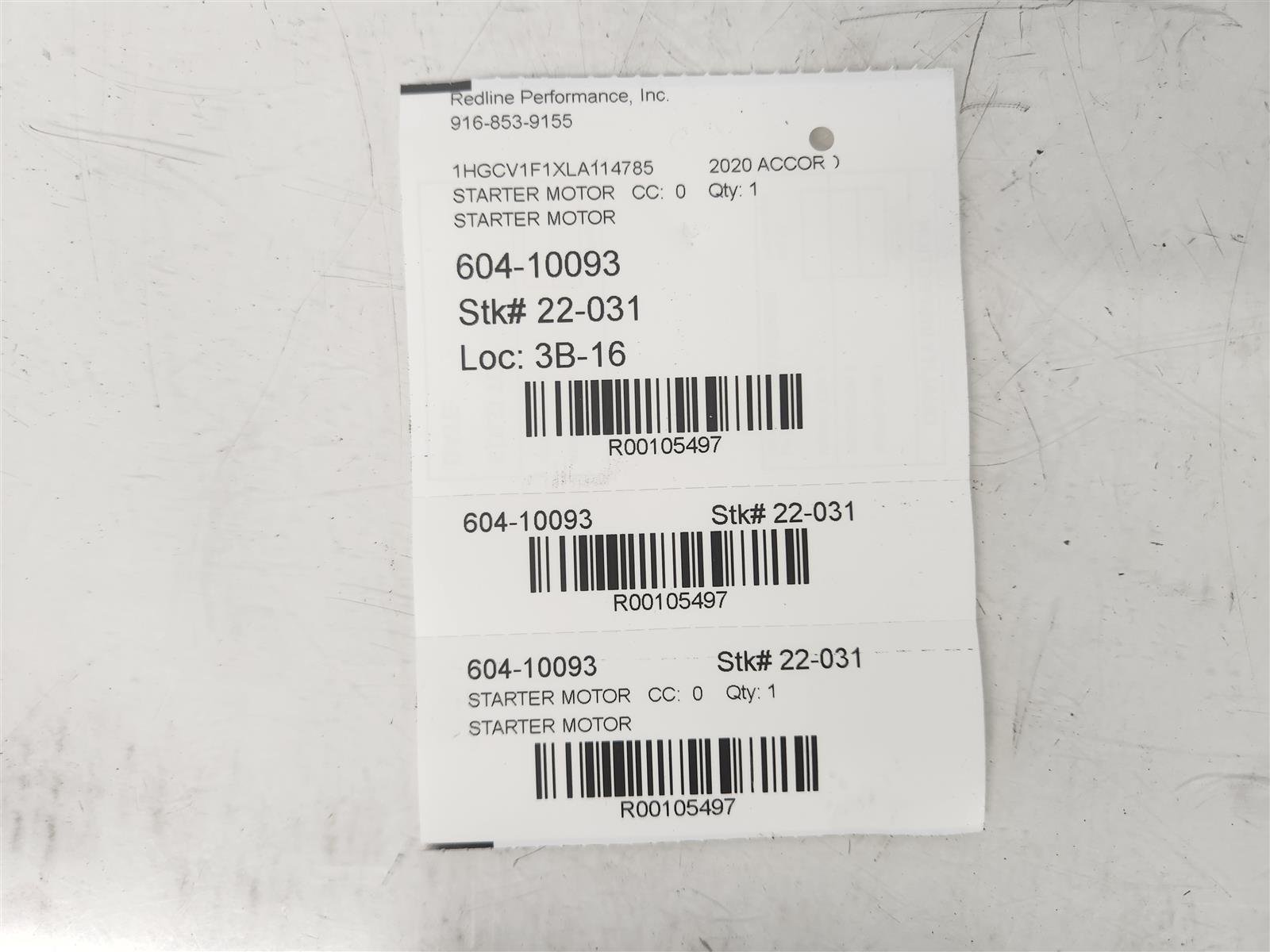 2020 Honda Accord starter motor is a used item with a warranty. This OEM replacement starter motor is genuine. This Honda part is for sale (please call for pricing).